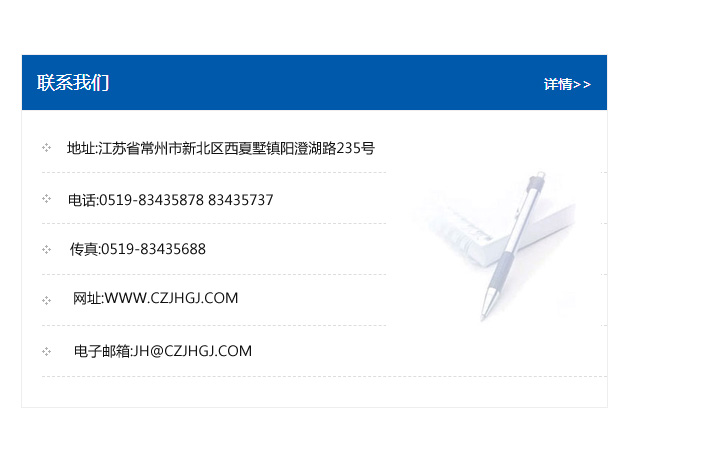 傳真:0519-83435688    郵編:213135    網址:WWW.czjhgj_com.shchuancheng.com    電子郵箱:JH@czjhgj_com.shchuancheng.com